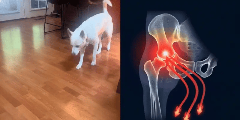 Nails scraping on the floor, trying to stand. At night, they can't get comfortable—lie down, get up, circle, repeat.